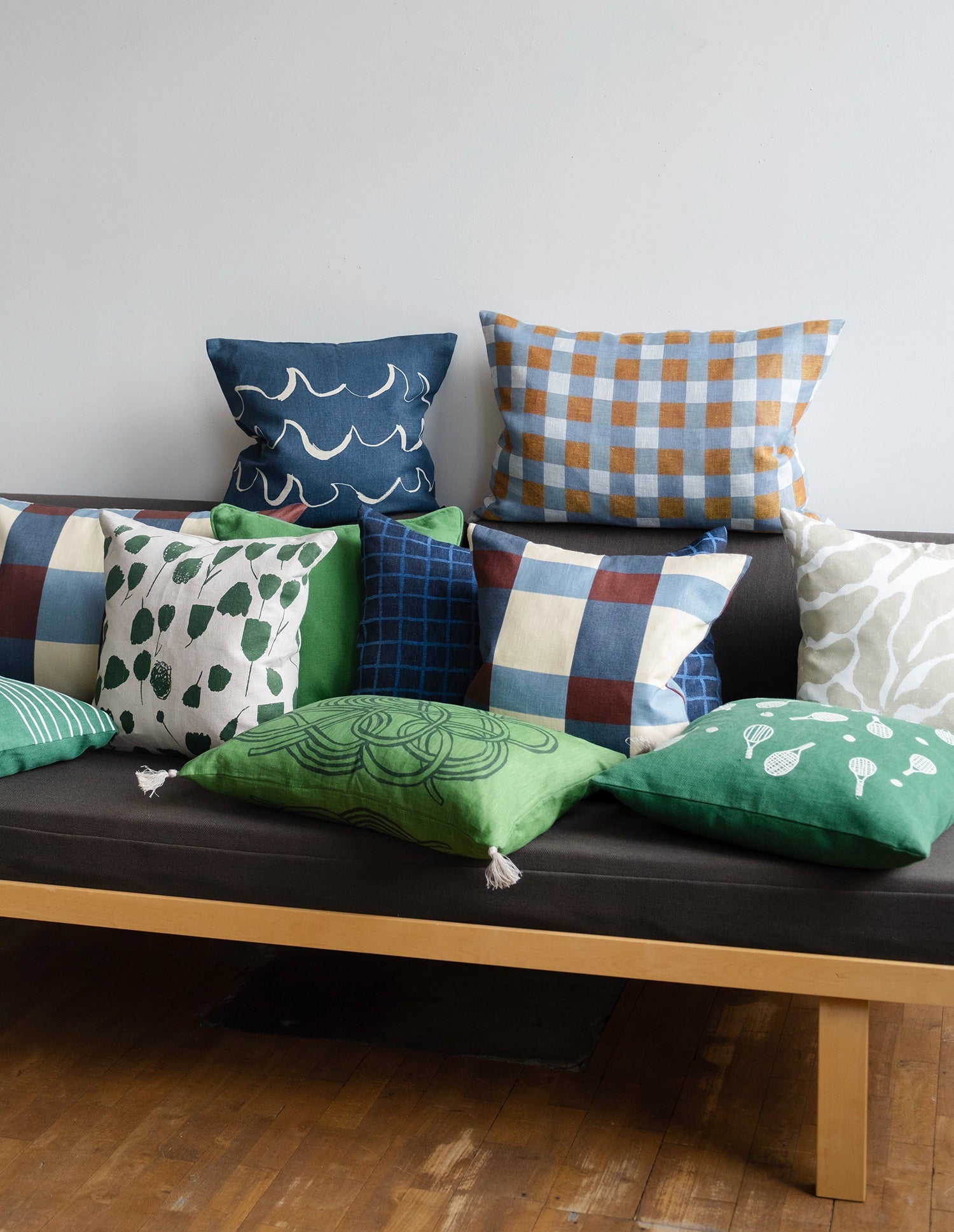 RUTIG KUDDFODRAL LINNE, BLÅ/SVART 48x48 cm