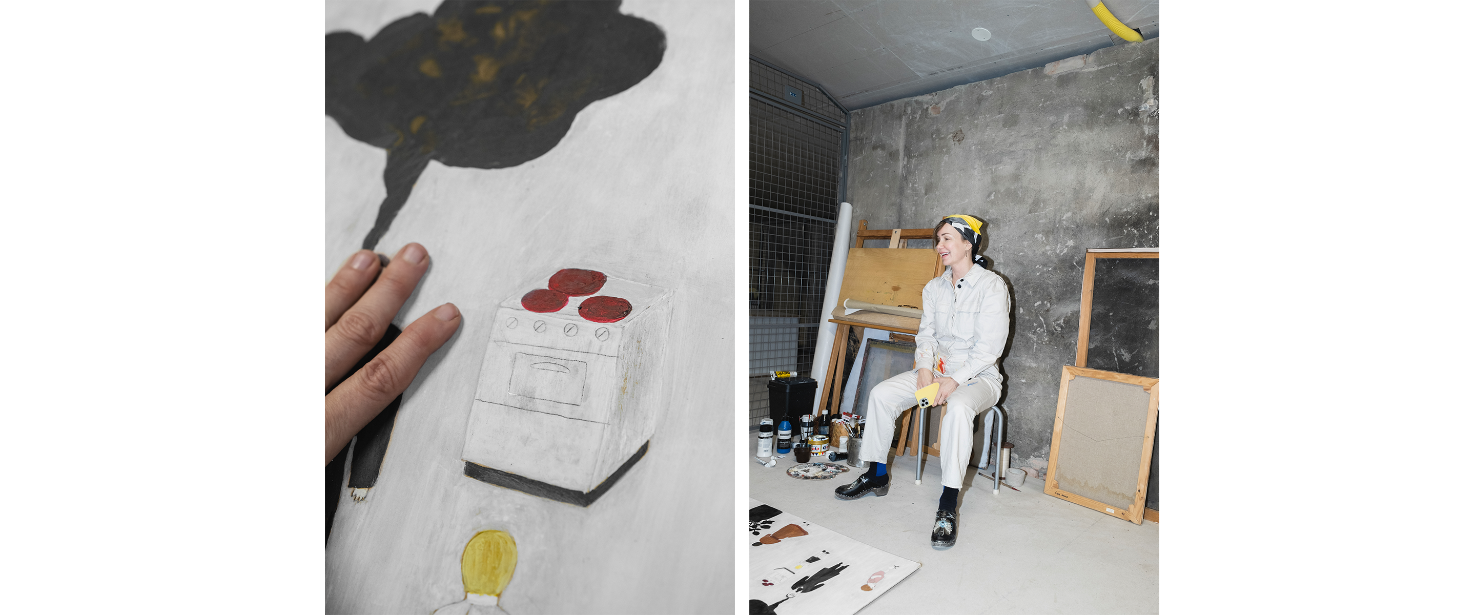 Idag arbetar hon bäst från ett hörn i sitt hem. Trots att hon har arbetat som designer under lång tid har hon fortfarande ingen fast rutin eller specifikt arbetssätt. En promenad, ett besök på loppmarknaden eller mållöst scrollande på telefonen är där hon hittar inspiration.