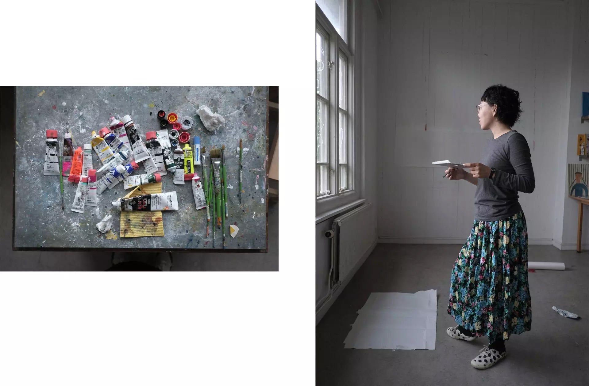 Den japanska konstnären Mogu Takahashi (född 1984) rör sig mellan teckning, målning, skulptur och olika visuella uttrycksformer. Med humor, spontanitet och lekfullhet skapar hon en konstant ström av bilder, från en kreativ process som aldrig avstannar. Teckning har kommit naturligt för henne sedan barndomen, men hon studerade ursprungligen arkitektur istället för konst. Det var en gallerist i New York som upptäckte hennes talang, och efter att ha blivit inbjuden till en grupputställning, blev människors uppskattning av hennes verk avgörande för hennes beslut att bli konstnär.