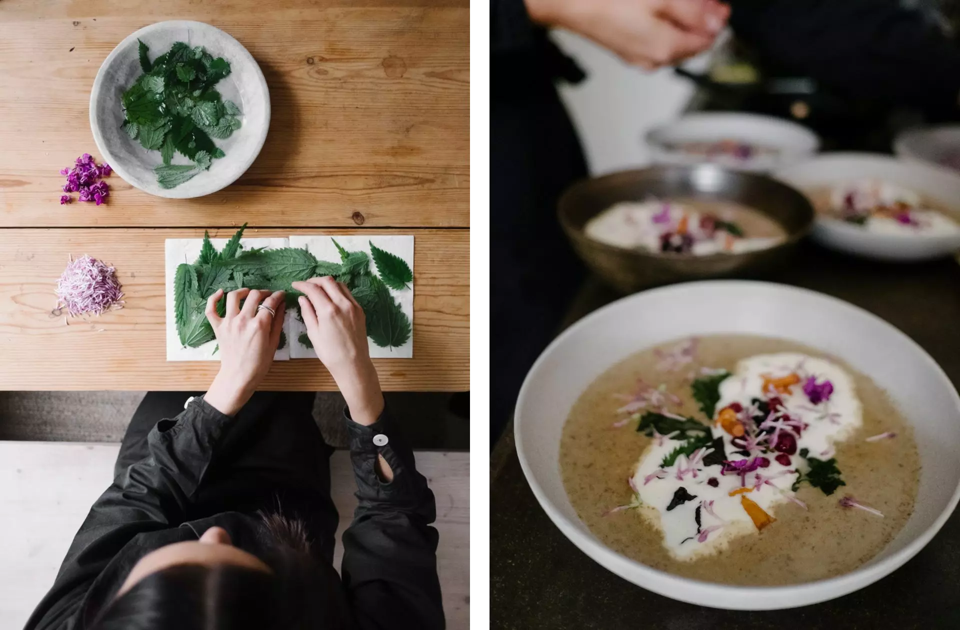 We had the luxury to experience some of Shalony’s amazing gourmet dishes made from scratch with such care. For lunch we were served a mushroom soup with chanterelle, black trumpet and funnel chanterell. This was topped with sour cream, fresh red clover, fried chanterelle pickled in nettle, milk thistle and ramson oil.