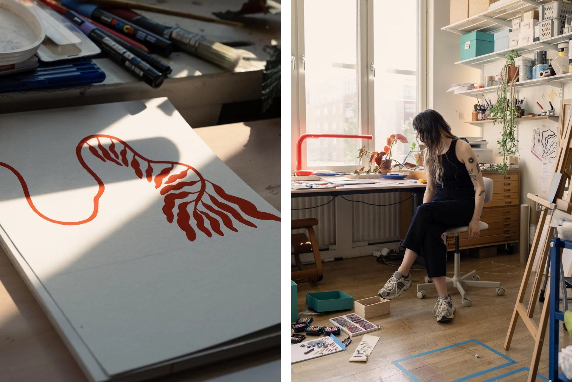 Konstnären Linnea Andersson är känd för sina storskaliga botaniska blad i livfulla färger. Hennes energiska, uttrycksfulla verk blandar färgstarka motiv och mönster som är slående, dynamiska och distinkt dekorativa.