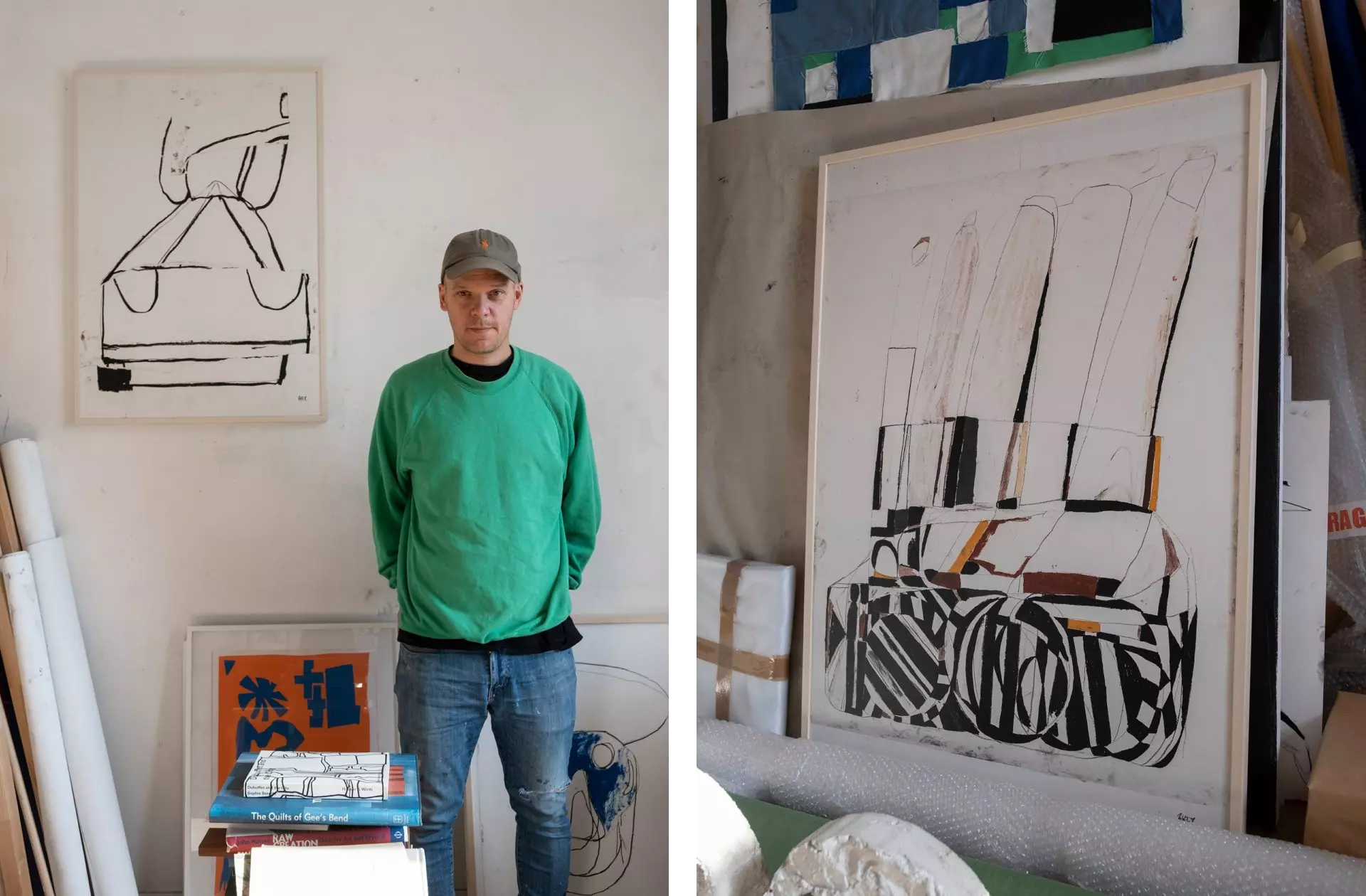 EKTA's work is liberating raw and playful, totally intuitive, unrefined yet balanced. With only a few outlined figures or colored silhouettes, he creates intriguing visuals. It's no secret that EKTA is driven by a willingness to take bold risks. When discussing his work, he emphasizes the importance of failure as a way of moving forward and finding a way around mind barriers that can occur when working. "Self sabotage" as a method. He is happy to invite the viewer into the process and often lets others decide when a work is finished. His art is energizing, just as he is. After a meeting with EKTA, everything feels possible.