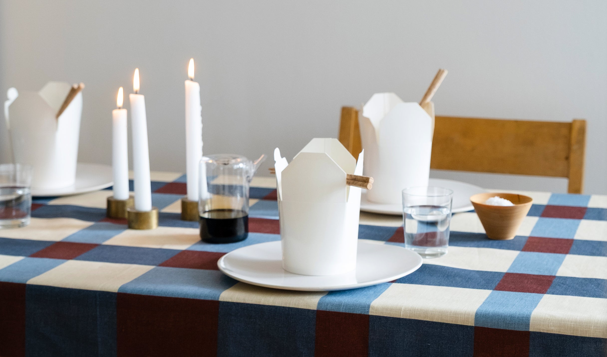CHECKED JACQUARD WOVEN TABLE RUNNER, BROWN -