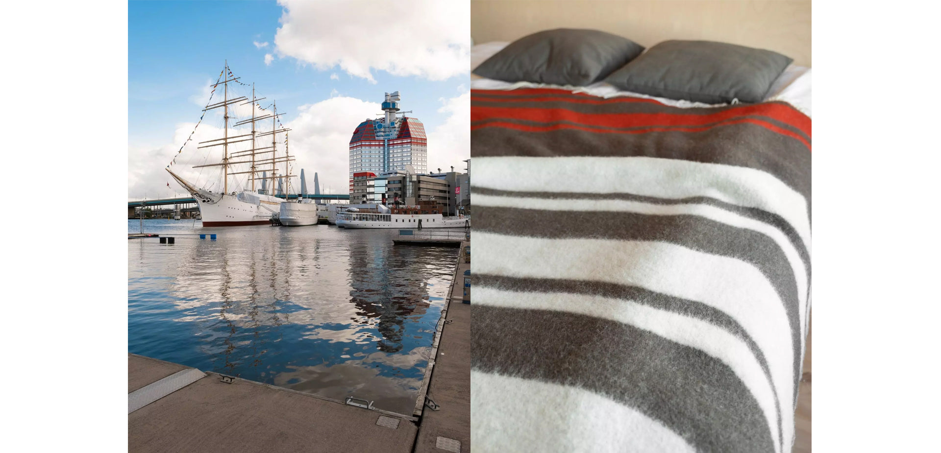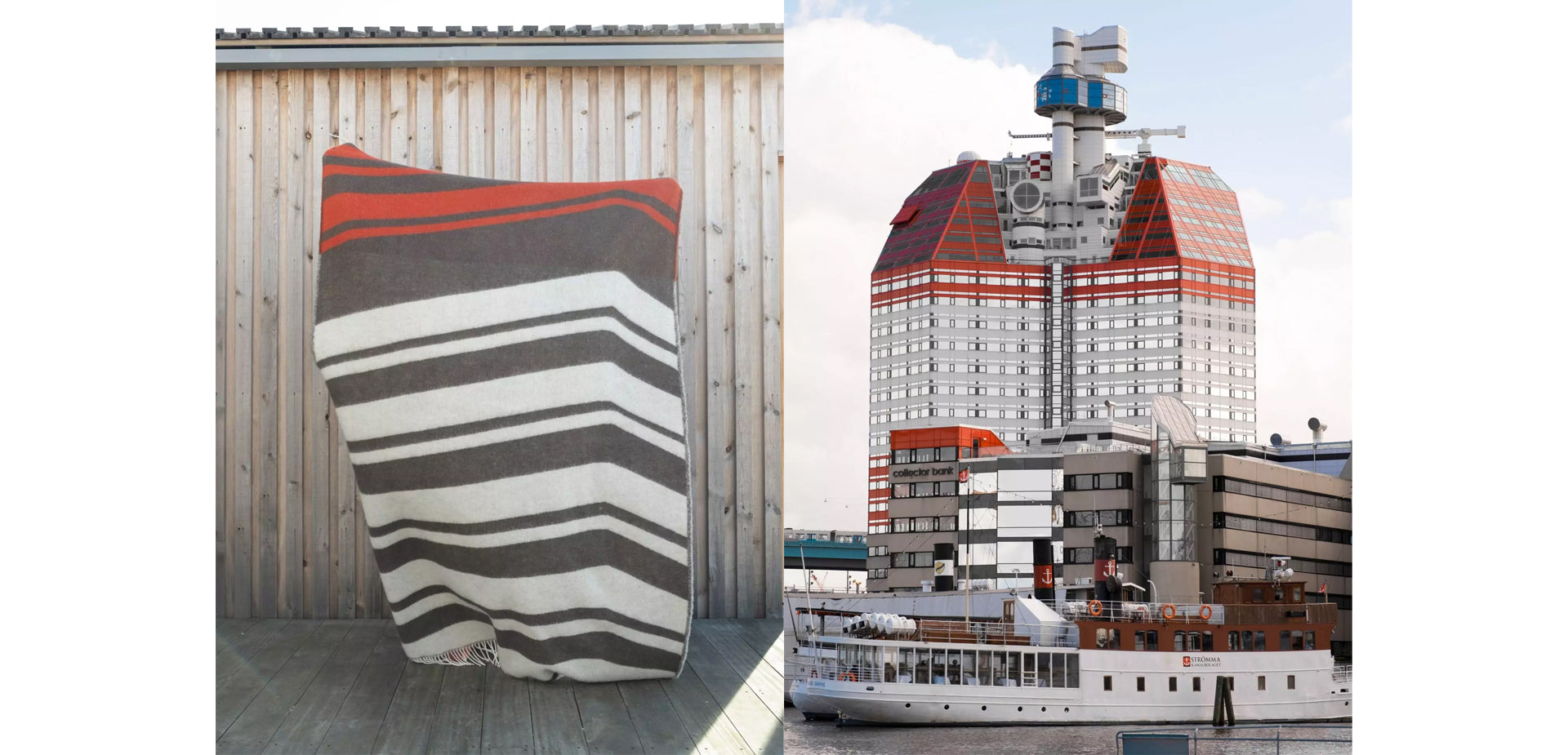 We are happy and thankful to be one of the winners in the competition for Gothenburg city’s anniversary products, as it celebrates 400 year. With the blankets Rosenlundsverket and Lilla Bommen we wanted to emphasize visually significant buildings in Gothenburg’s everyday life and give a warm appreciative angle on surfaces one might take for granted. Together they form the title Warm Gothenburg. The blankets are woven from lambswool and detailed with fringed edges on the short sides. The blankets produced by Klippan Yllefabrik are thick and warm yet soft and comfortably lightweight. Limited edition of 200 units per design.